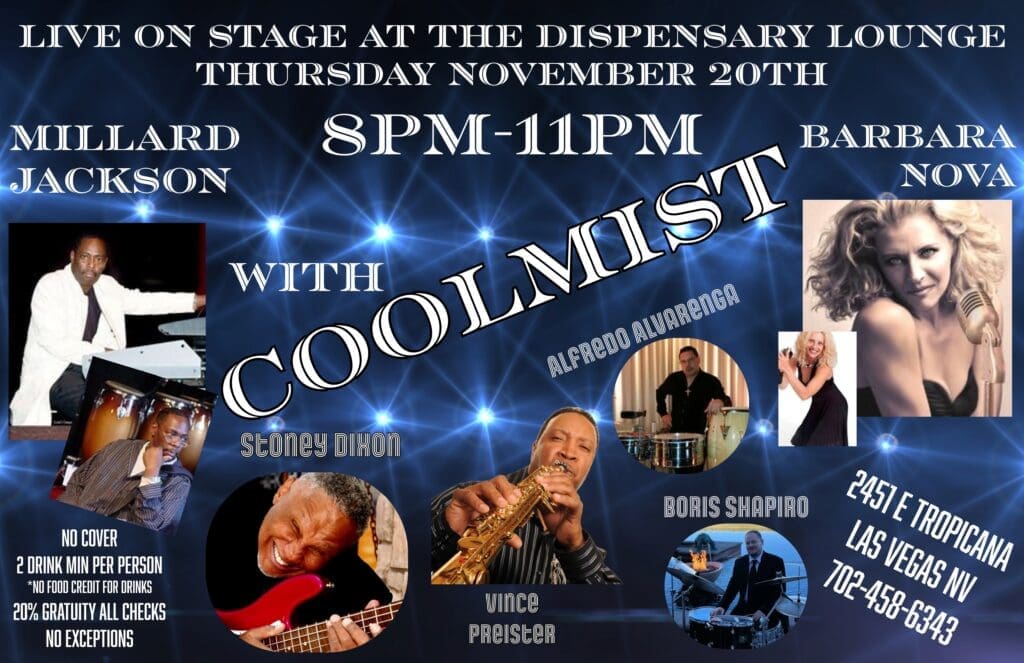 Listen to the soulful rhythms and feel the relaxing energy of the live musical performances at The Dispensary Lounge in Las Vegas. Our stage is a vibrant canvas where jazz takes center stage, complemented by an eclectic mix of other genres. Enjoy an unforgettable evening of musical brilliance as the talented artists we feature captivate your senses.